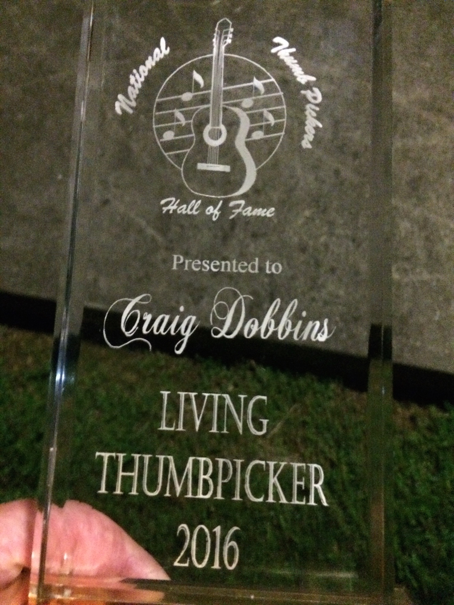 Fame. As Micah read in my acceptance, "As long as I'm alive and pickin', I'll keep trying to lay that thumb in there!"